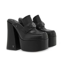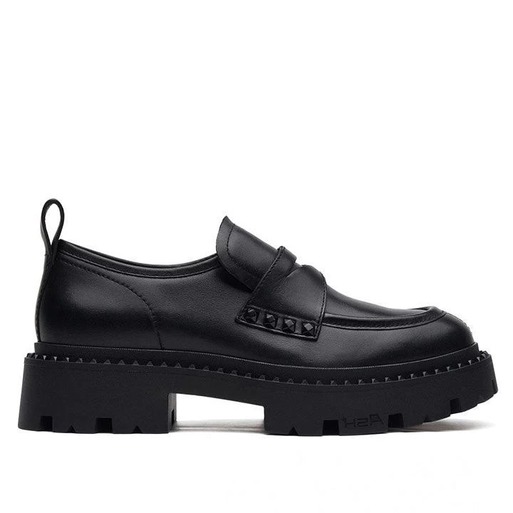 Ash GENIAL BIS Cleated Sole Loafers in Black Leather features: