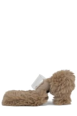 Faux-fur sandal with vinyl toe-loop and strapÂ