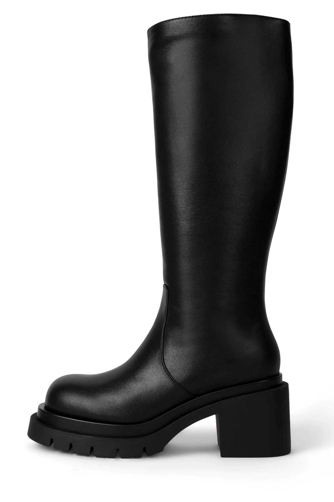 Knee-high double-stacked platform boot