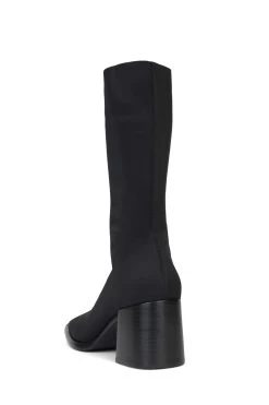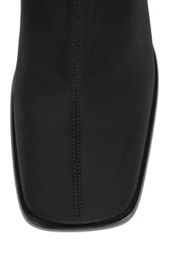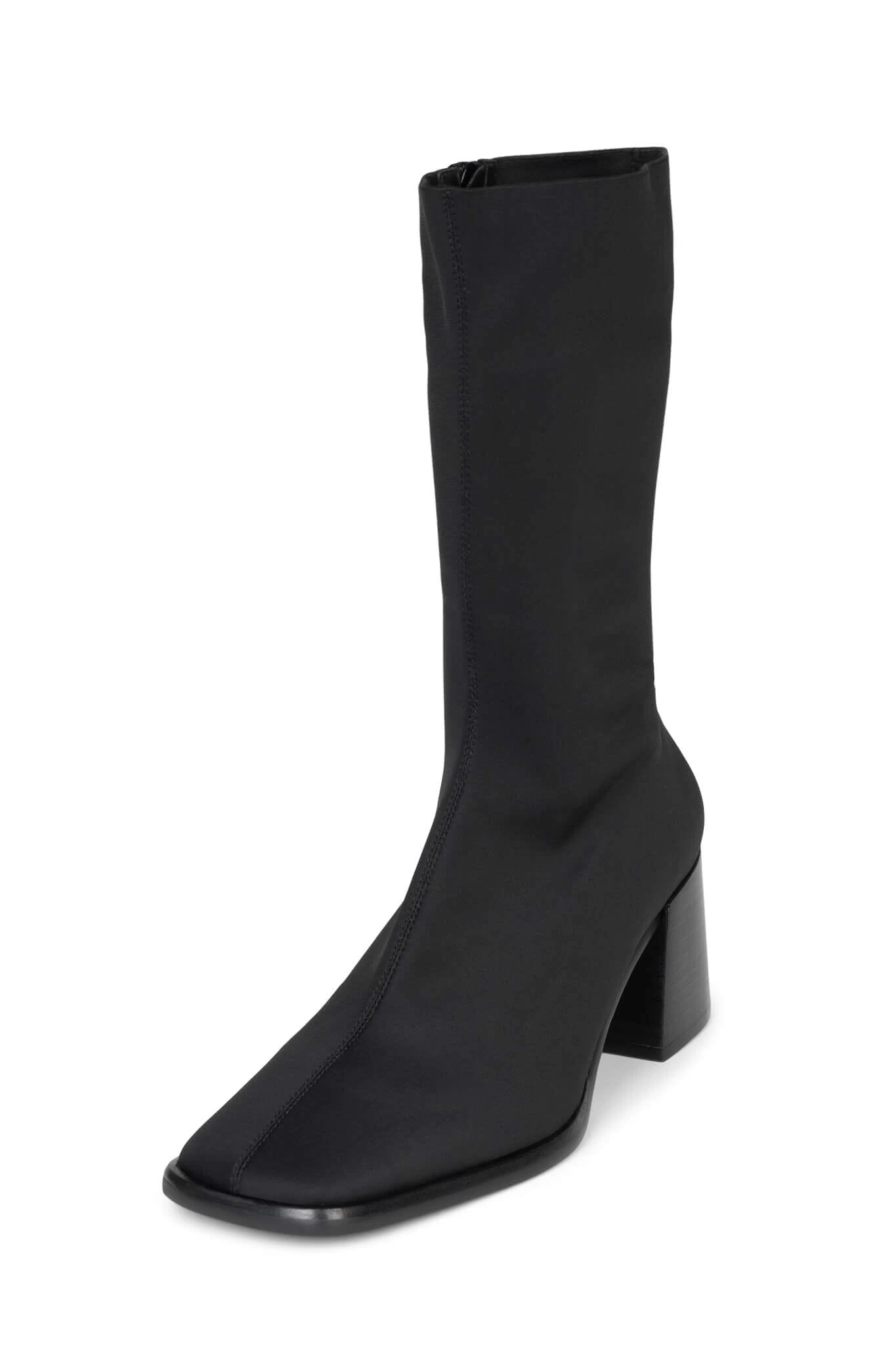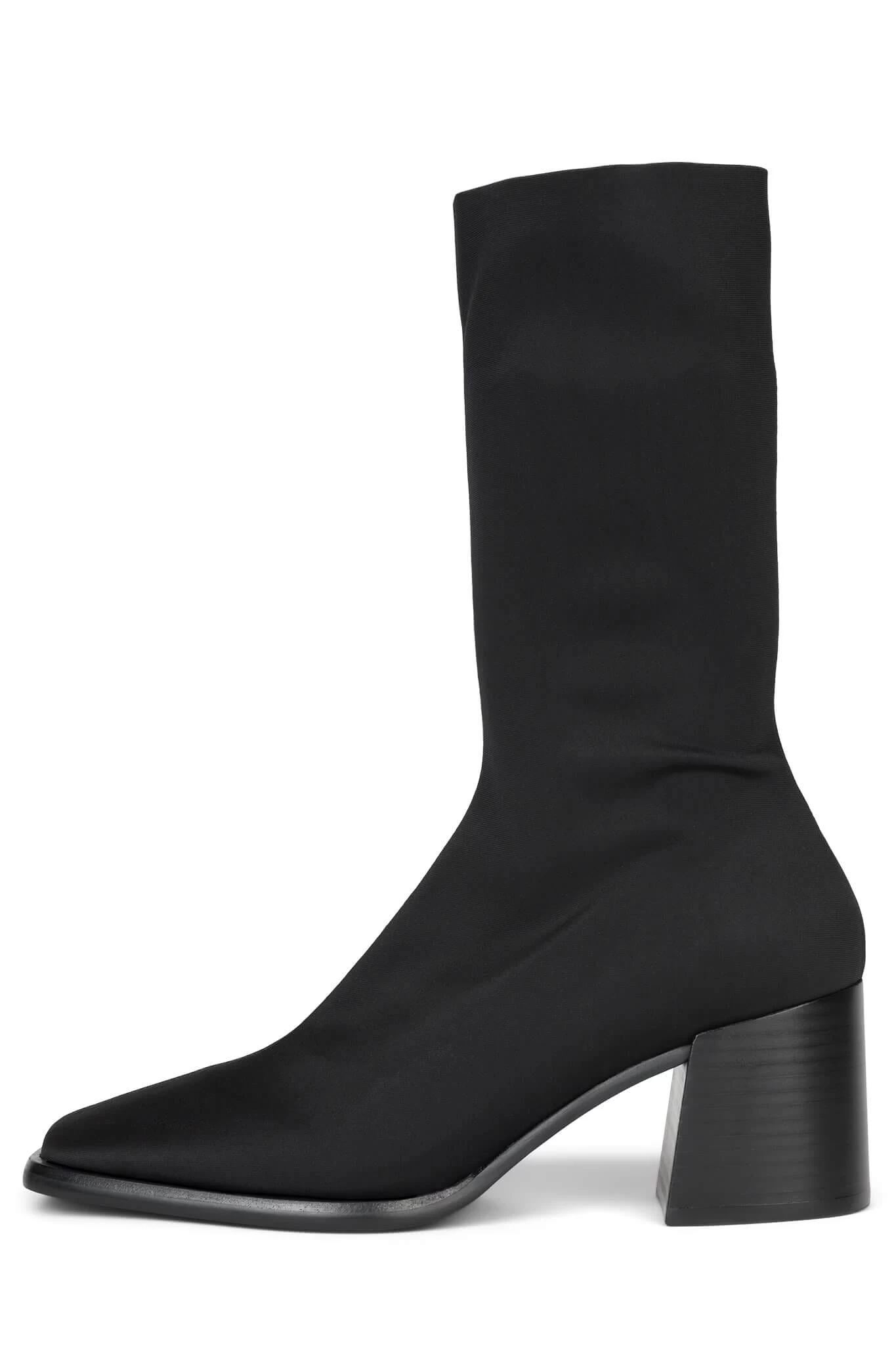 Square-toe mid-calf block heeled sock boot