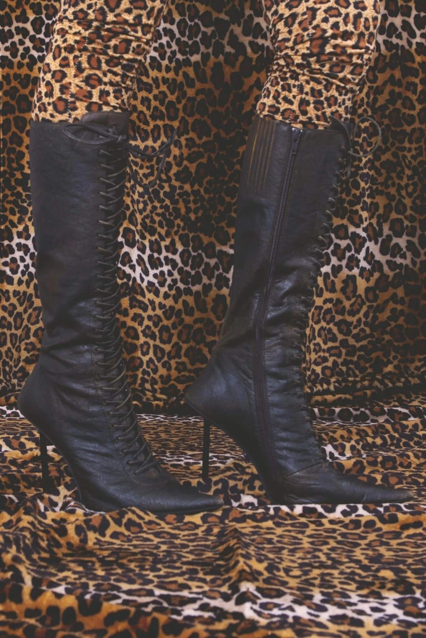 Knee-high pointed-toe lace-up stiletto