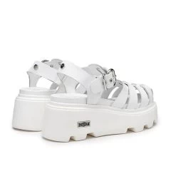 Capture the looks that matter with these sandals from Cult. Made of white leather with a classic caged upper and ankle strap, they stand out on maxi platform soles and feature the unmistakable metal plate with the brand logo on the outside of the sole.