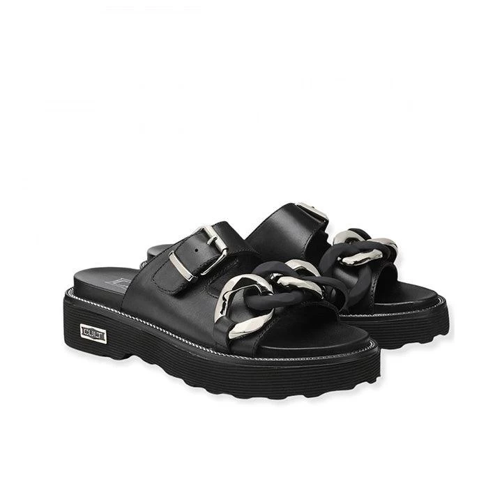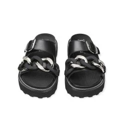 For fashion victims looking for the perfect comfortable sandals for the summer, Cult proposes this black leather model with a precious character: topped with two straps: one with a buckle and the other embellished with a metallic silver maxi chain decoration, they will prove to be perfect to accompany you in the city as well as on holiday thanks to the practical ergonomic sole.