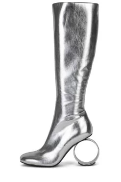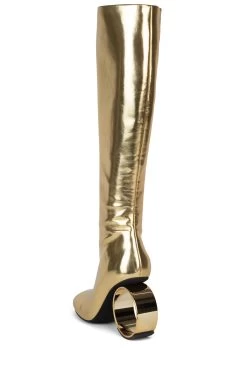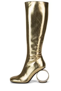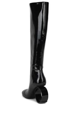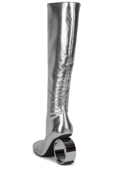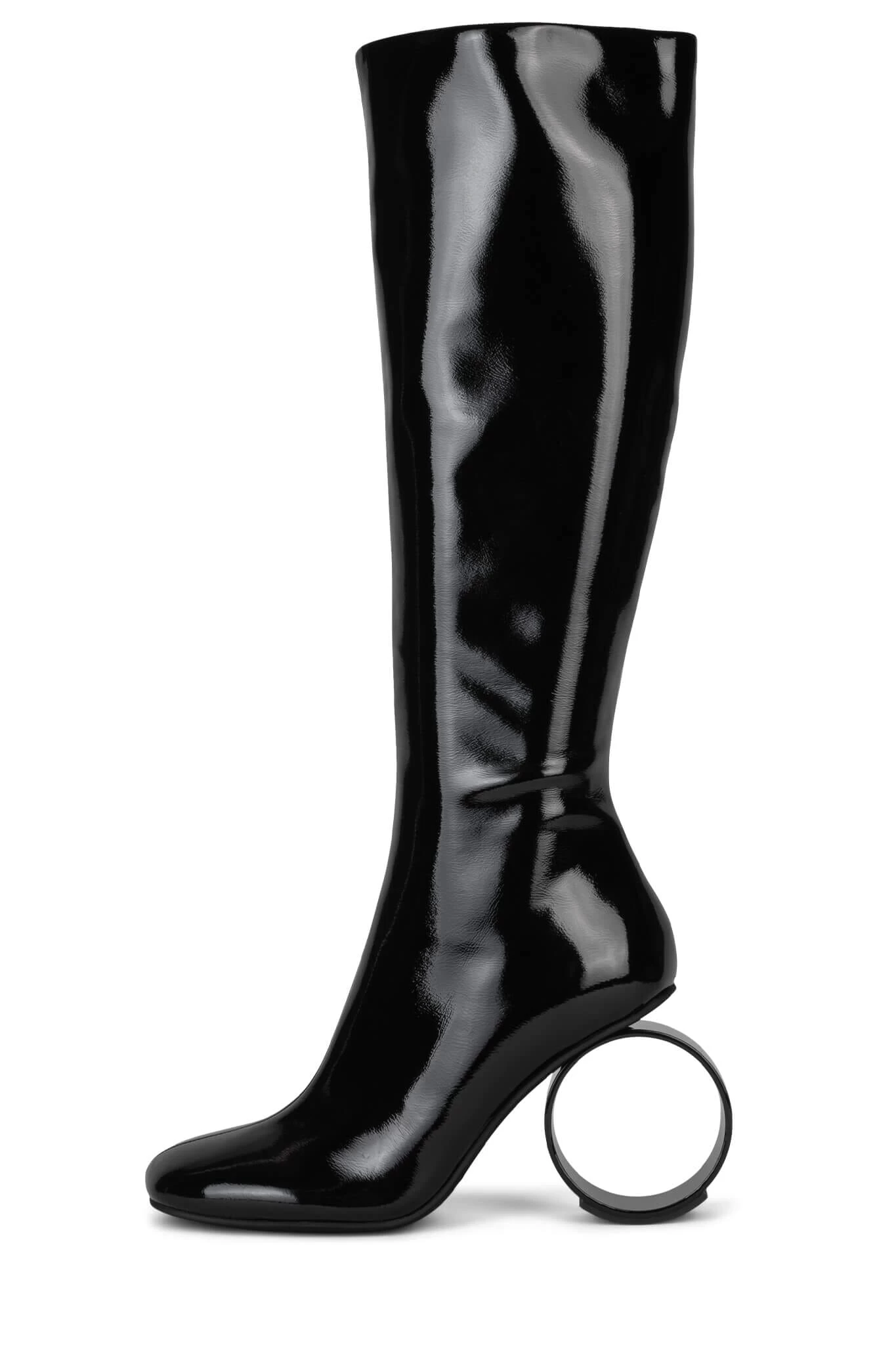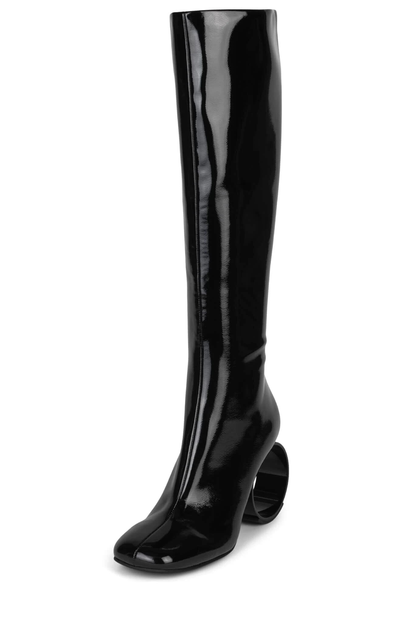 Knee-high stretch boot with sculpted circular heelÂ