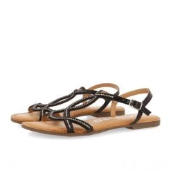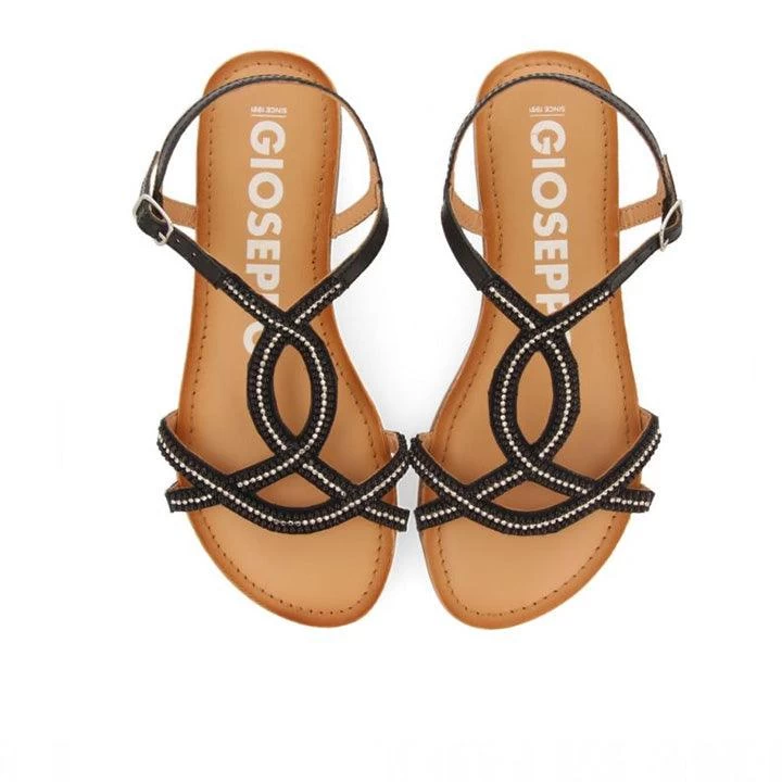 Haven’t got your Gioseppo sandals for this summer yet? Flat black sandals featuring thin straps with mini decorative pearls and adjustable buckles. Adjustable fastening at the ankle. Leather insoles with latex cushioning for extra comfort. Flexible soles. Insoles made of leather produced in tanneries which follow a more sustainable tanning process in line with Leather Working Group standards.