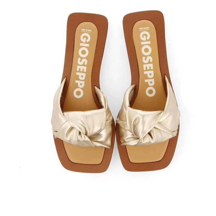 Gold braided leather flat sandals with adjustable ankle closure. Leather insole padded with latex for better cushioning. Soft floor. Tanned leather insole.