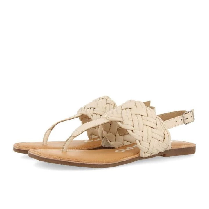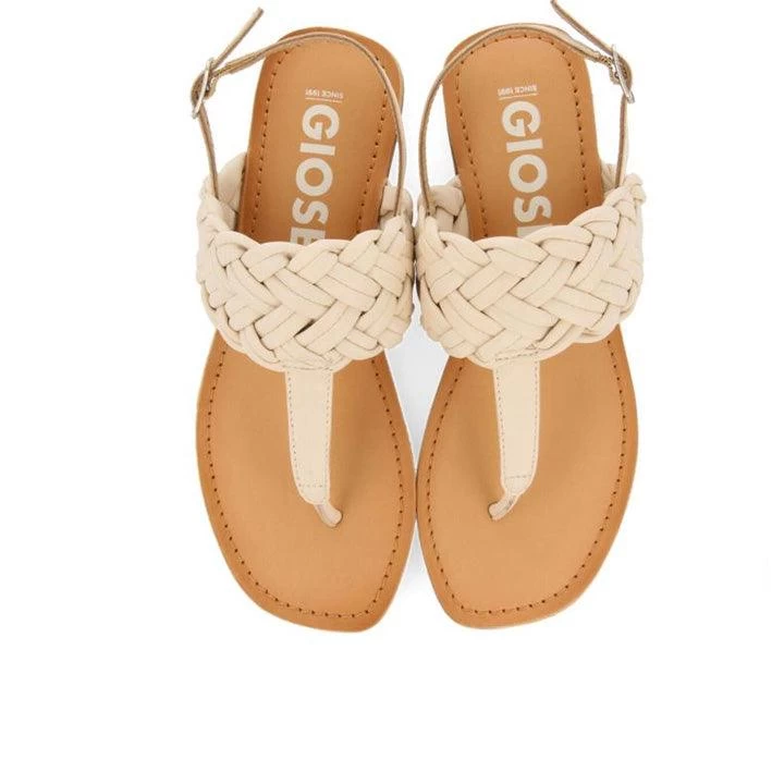 Essential for this season! Flat off-white sandals in braided leather featuring thin straps adjustable with a buckle. Leather insoles with latex cushioning that guarantees extra comfort. Flexible soles. Insoles made of leather produced in tanneries which follow a more sustainable tanning process in line with Leather Working Group standards. Discover the latest summer sandals in the new Gioseppo Woman Collection.
