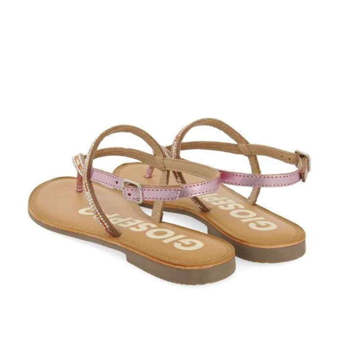Leather sandals with thin pink metallic straps detailed with multicolored beads and rhinestones. Insole padded with latex. Insole made with tanned leather following a more sustainable process according to the standards of the leather working group. Your favorite sandals are in the new Gioseppo woman collection.