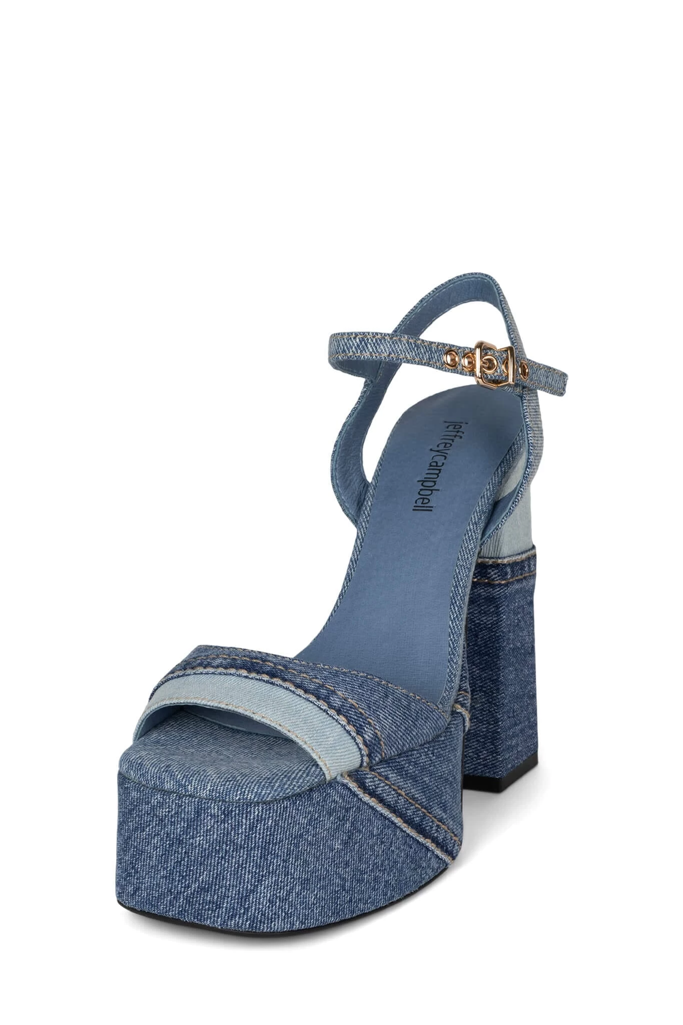 Denim platform sandal with ankle strap