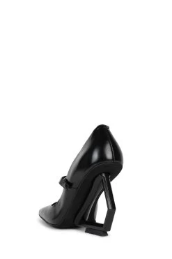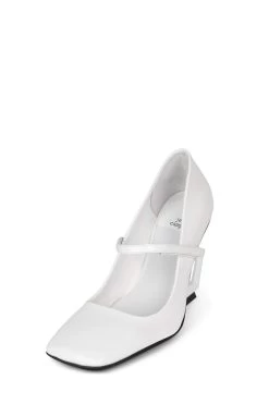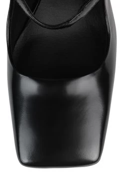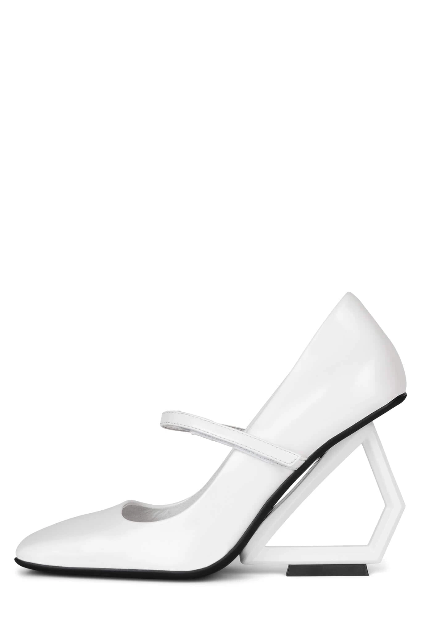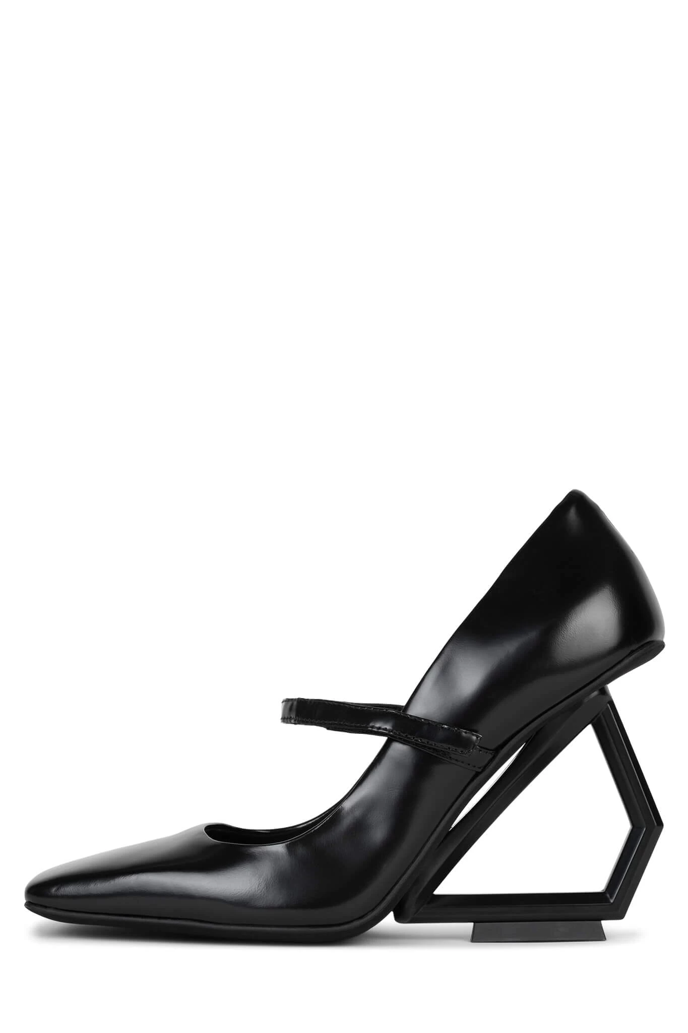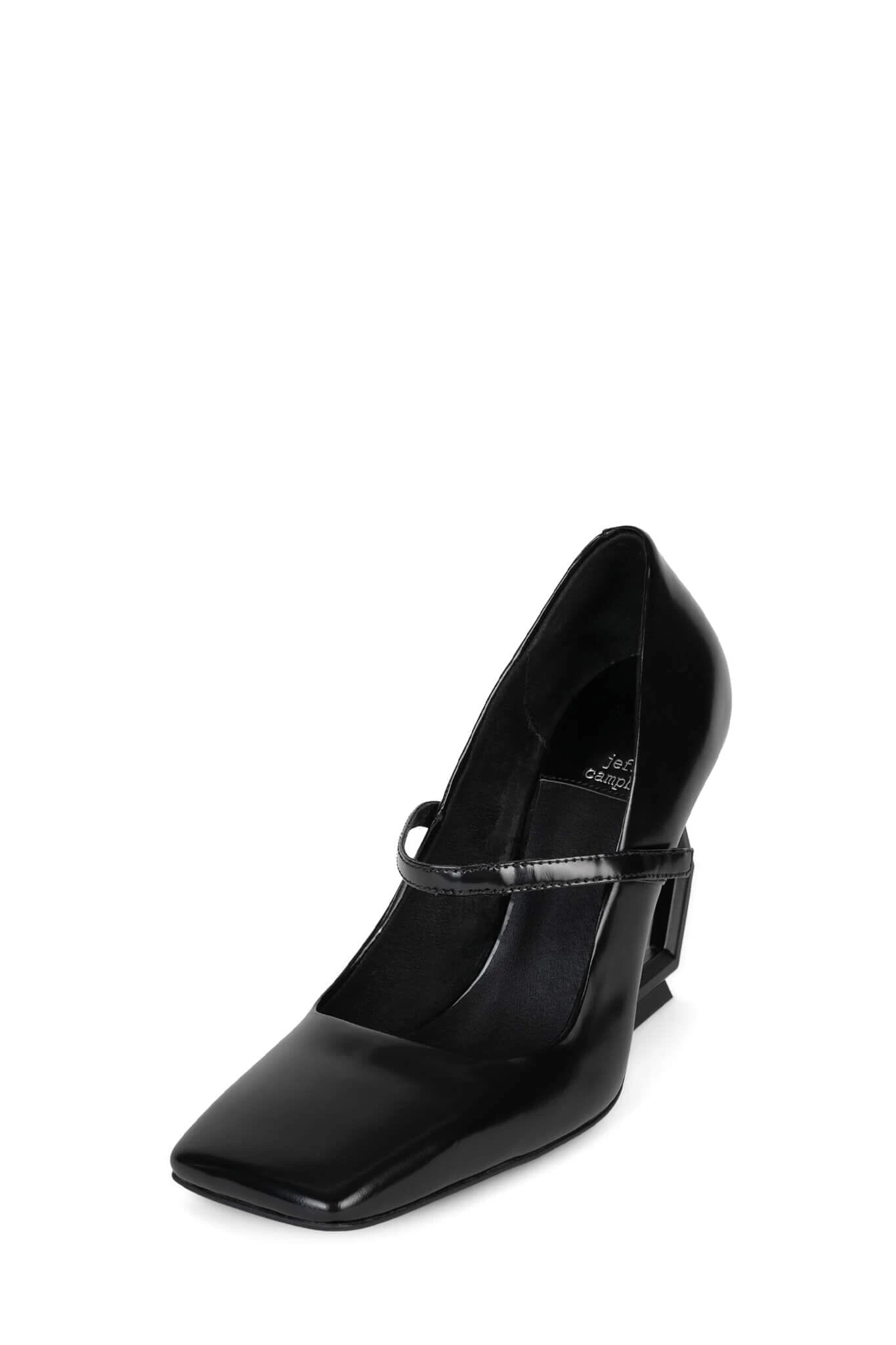 Square-toe mary-jane with sculpted cut-out wedge