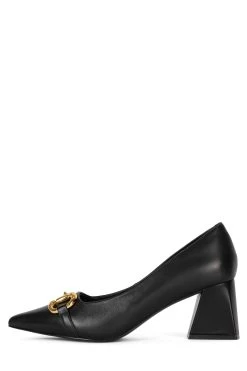 Pointed-toe pump with block heel and metal-bit