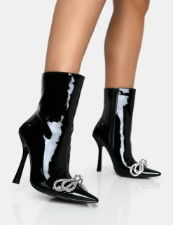 Ready to meet your new favs? Say hello to Orla! The perfect ankle boots for the spring seasons. Featuring black patent material, diamante bow and stiletto heel. Were styling her with black cargos, oversized tee and silver bag. How are you styling her?