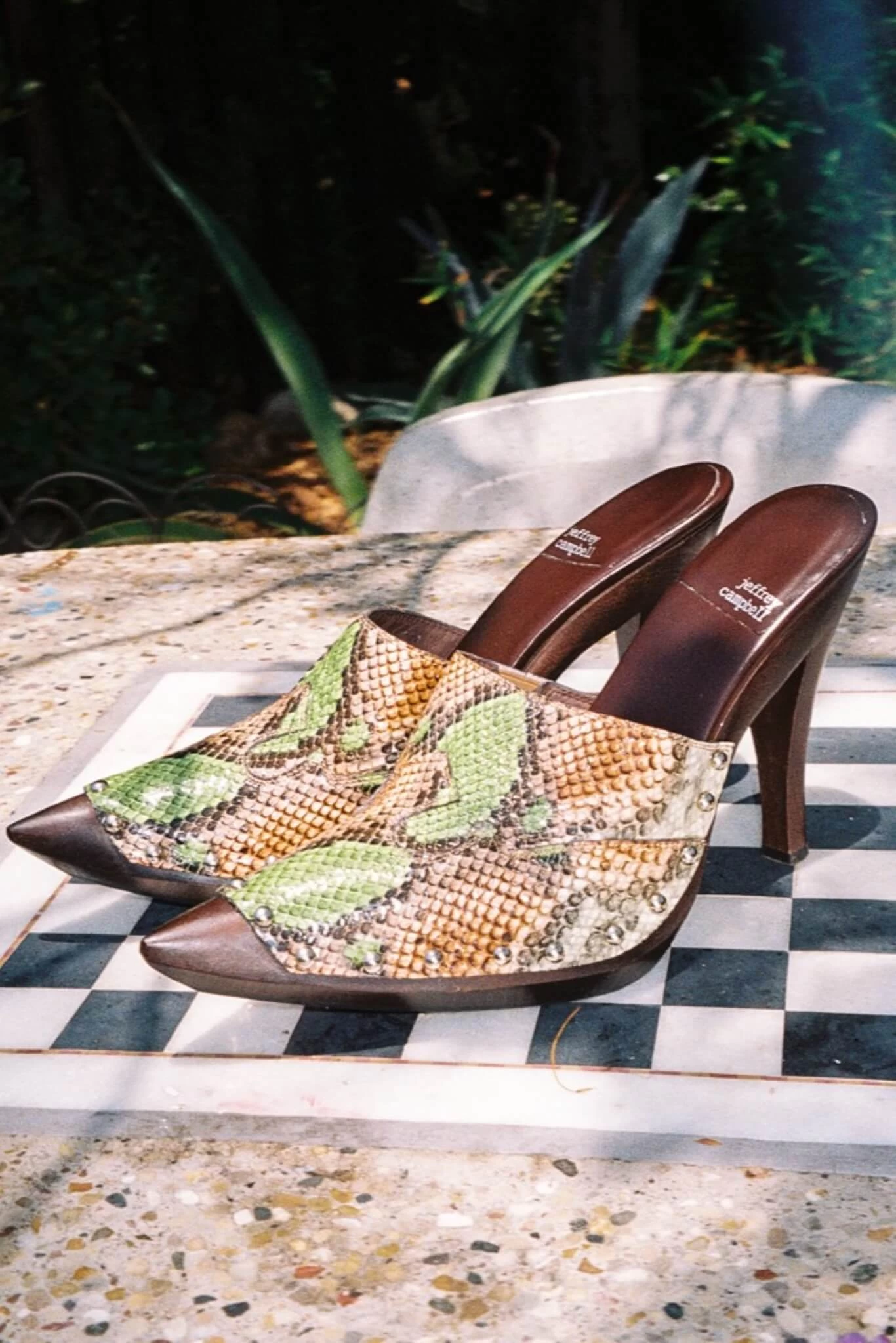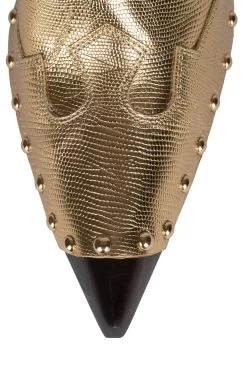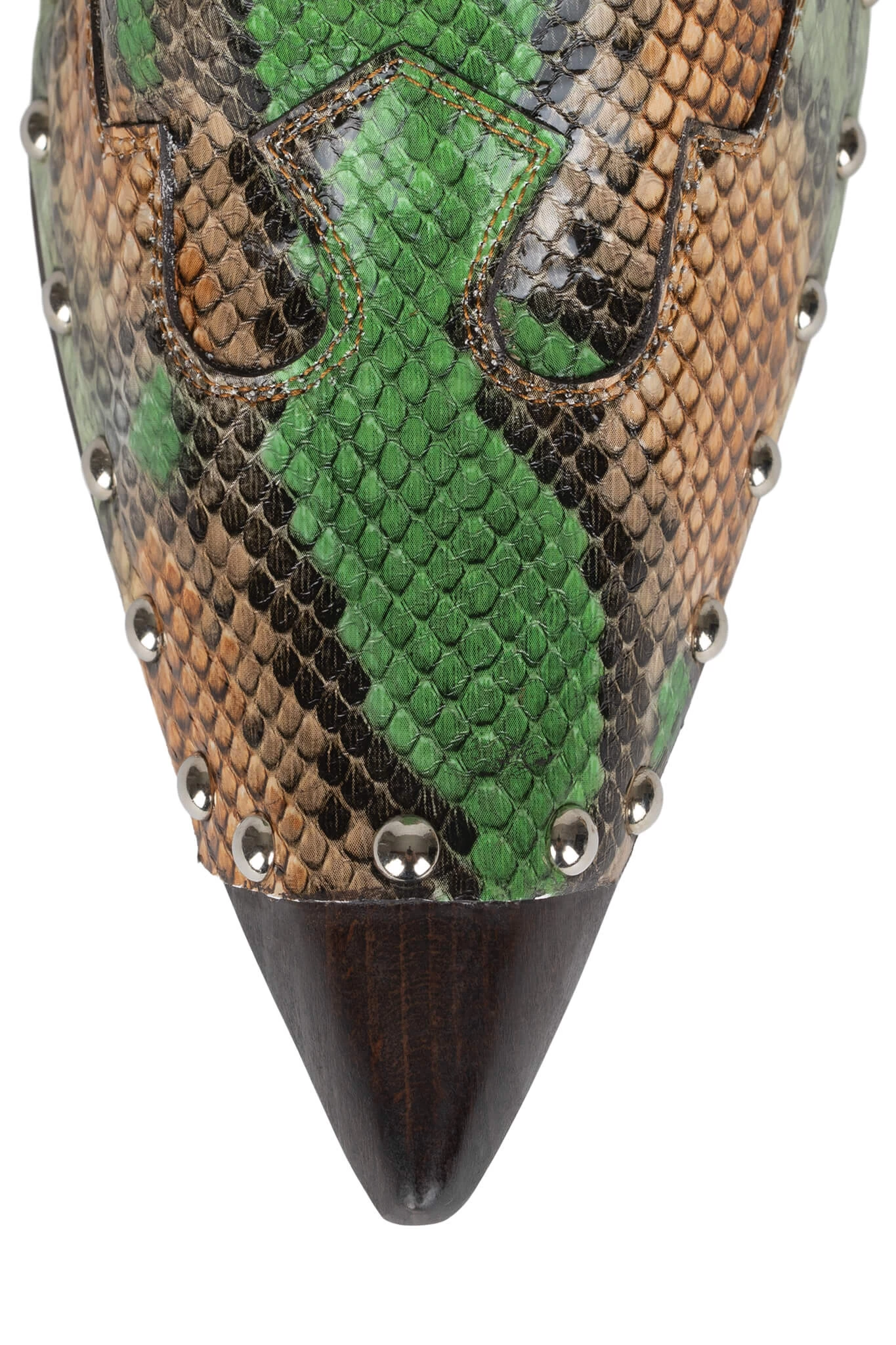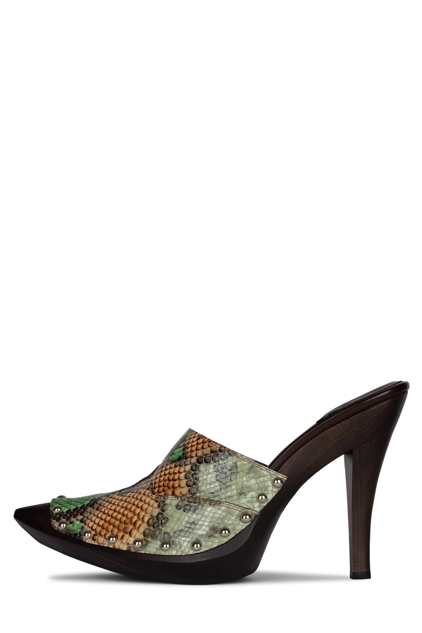 Pointed-toe western mule with wooden stiletto heel