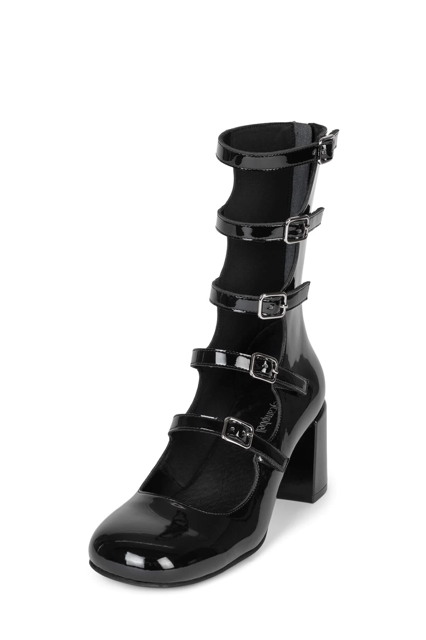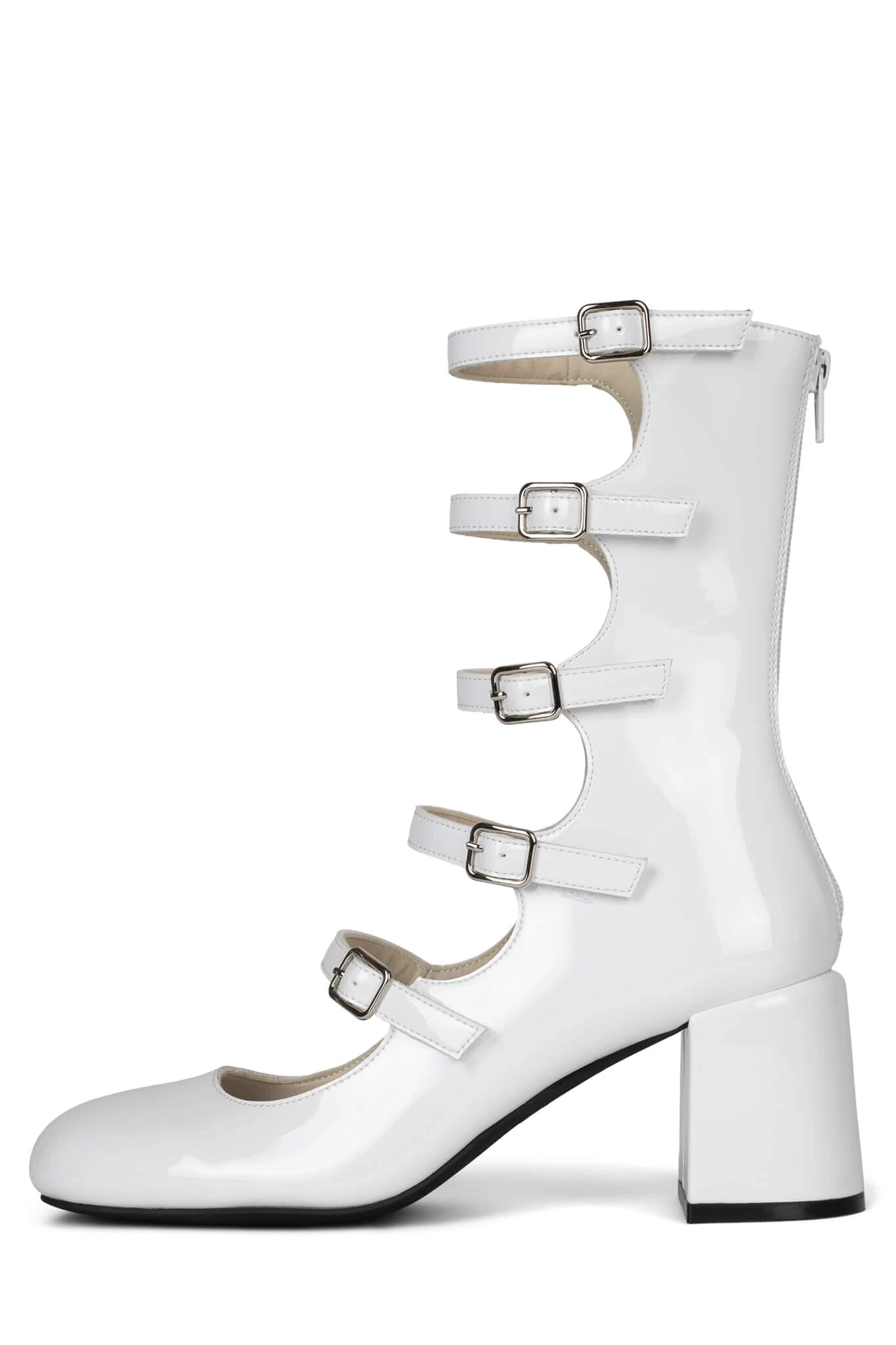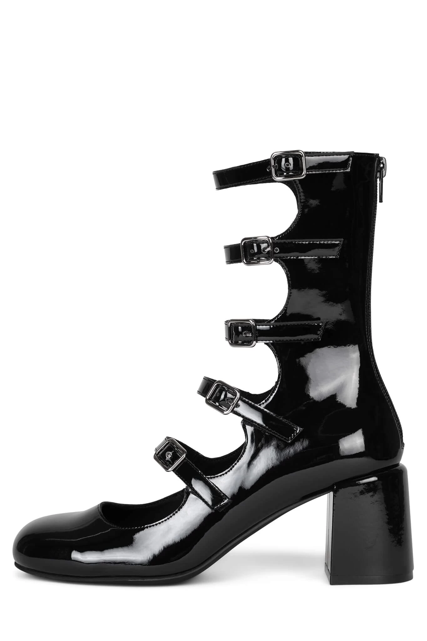 Cut-out mid-calf mary-jane pump with buckle detail