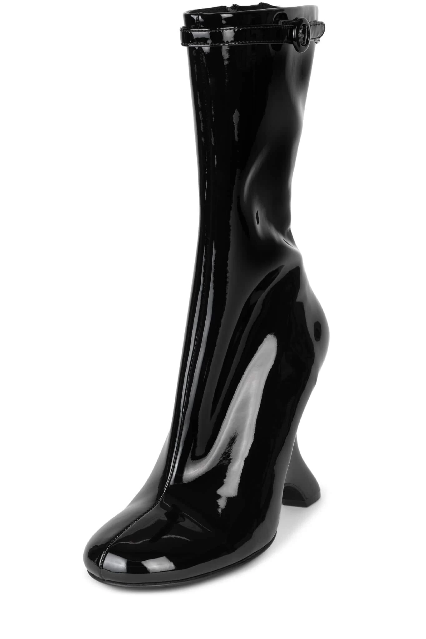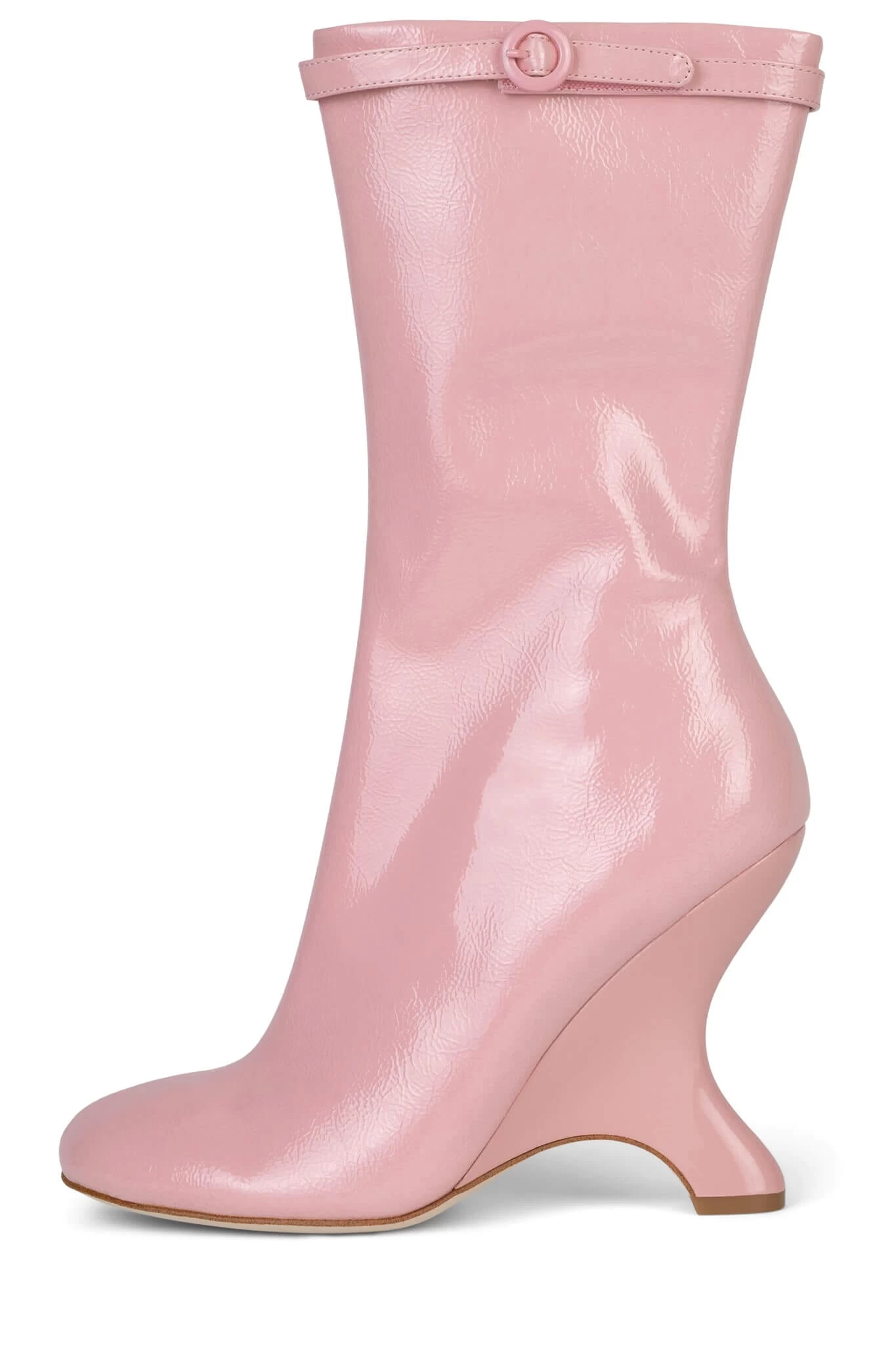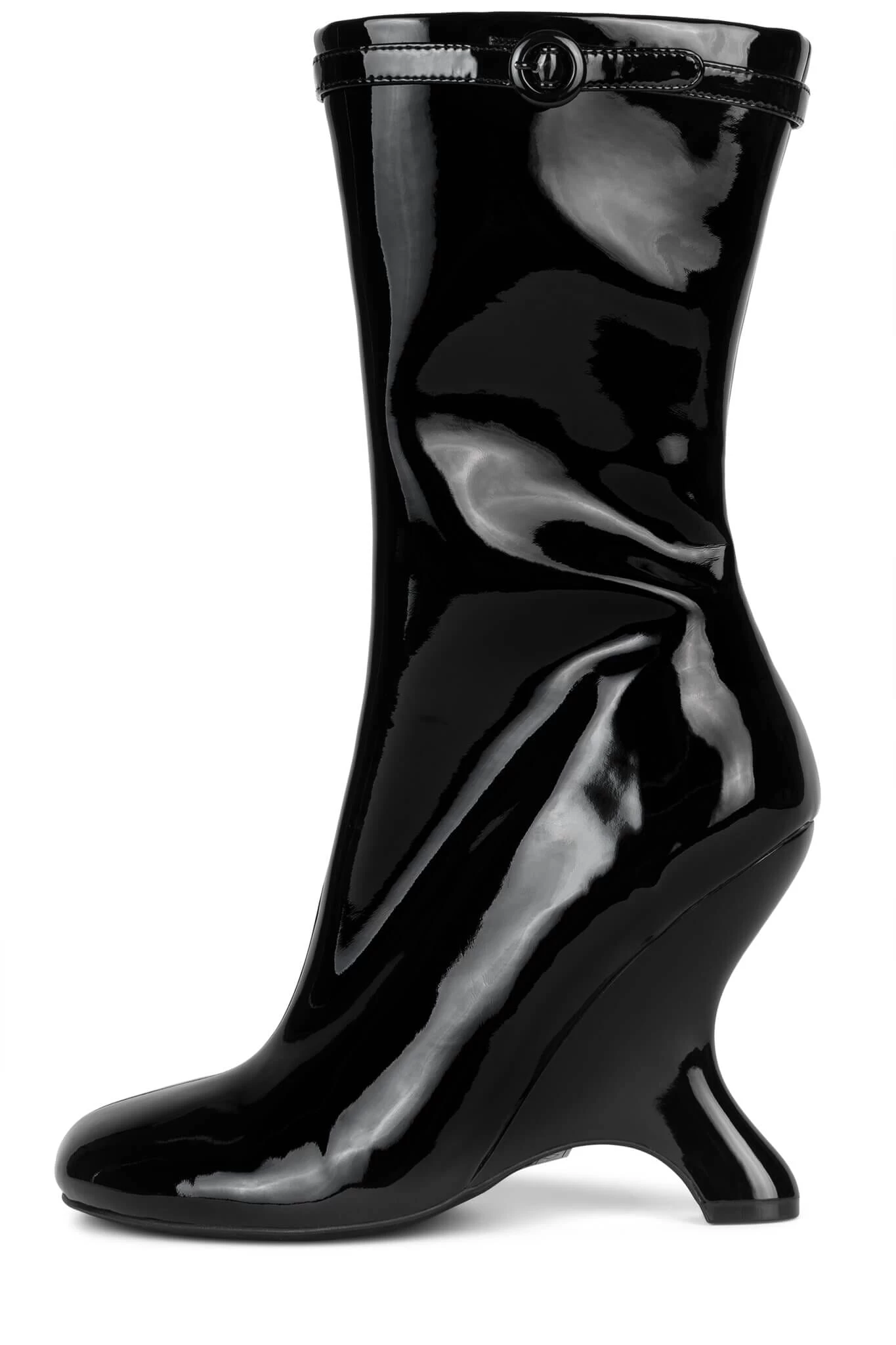 Mid-calf sculpted wedge platform boot with buckle detail
