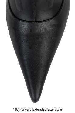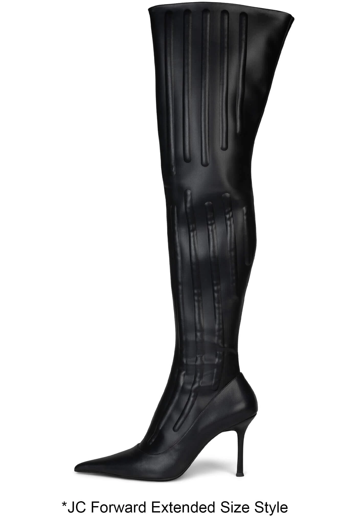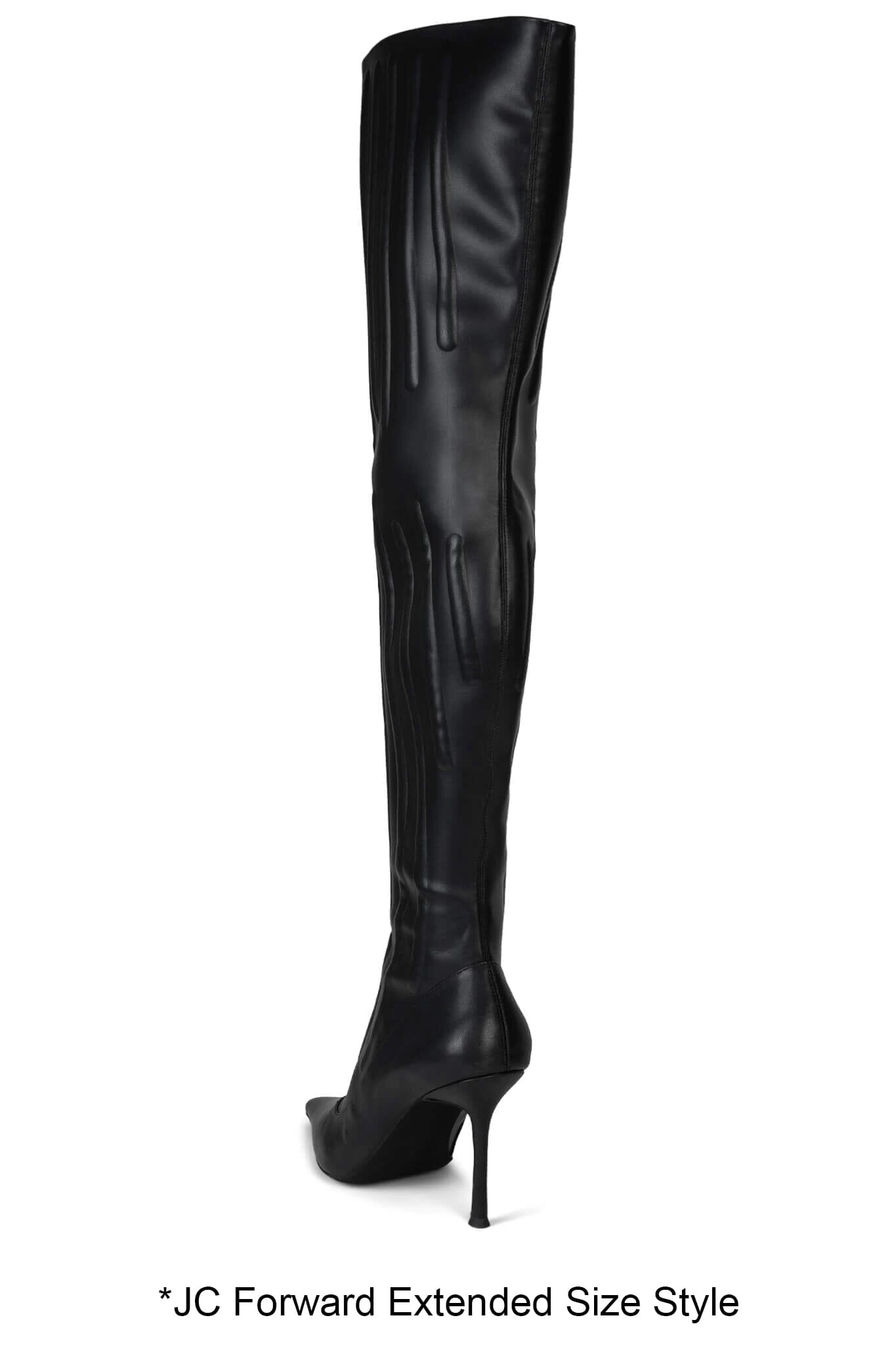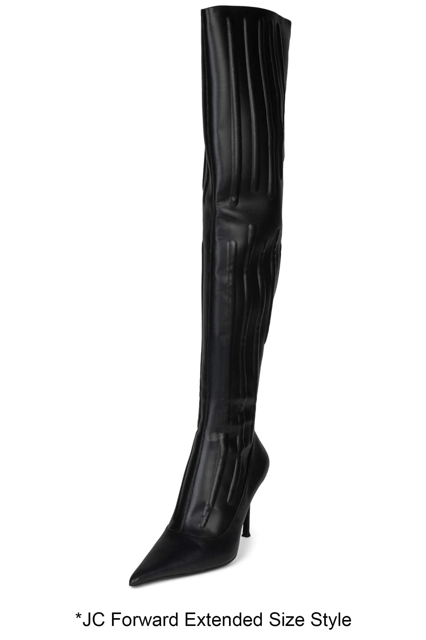 Our JEEPERS thigh-high pointed-toe stiletto boot, now offered in extended sizing