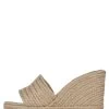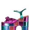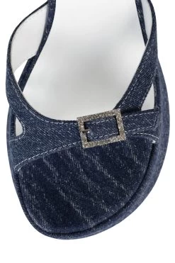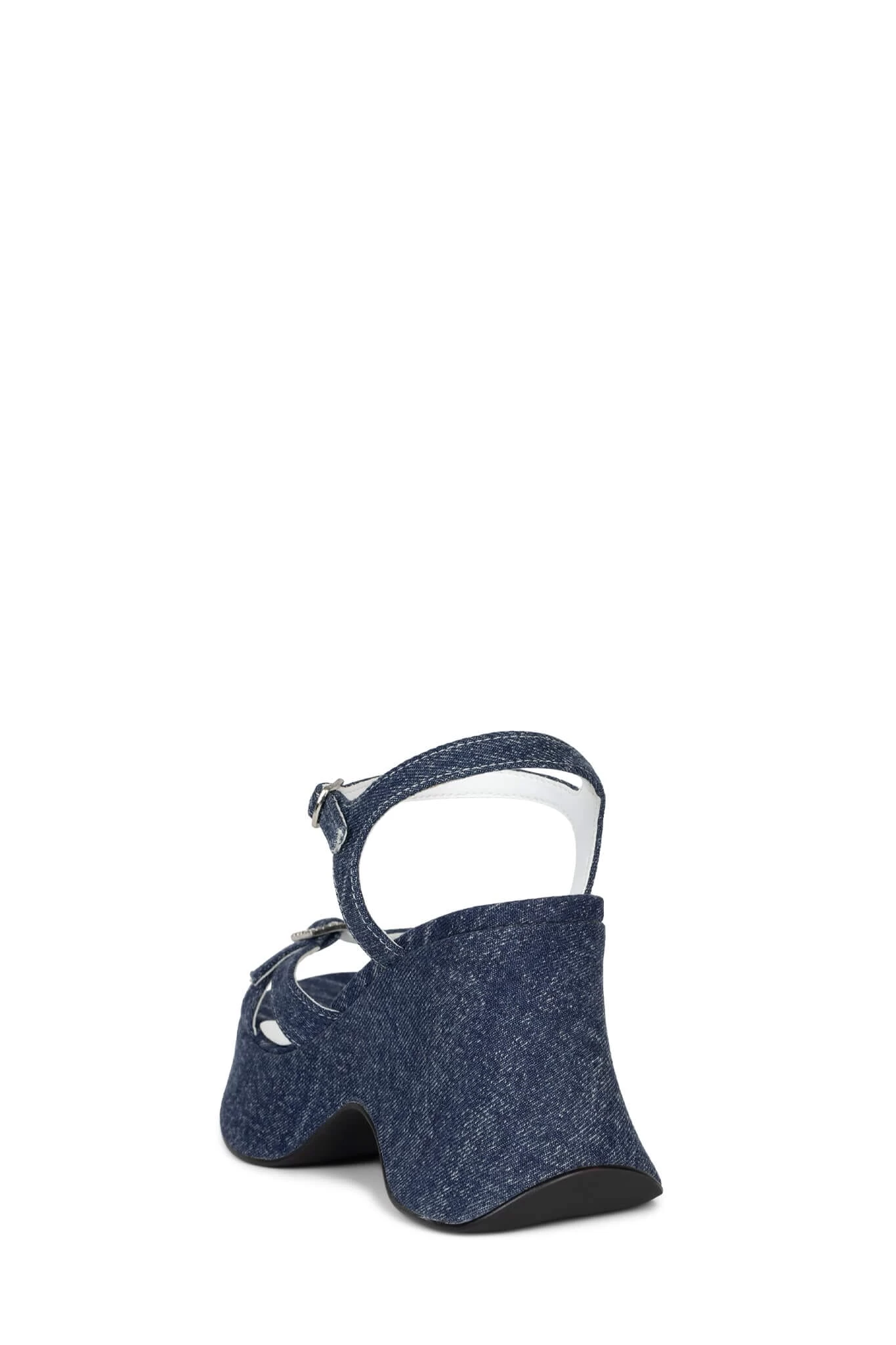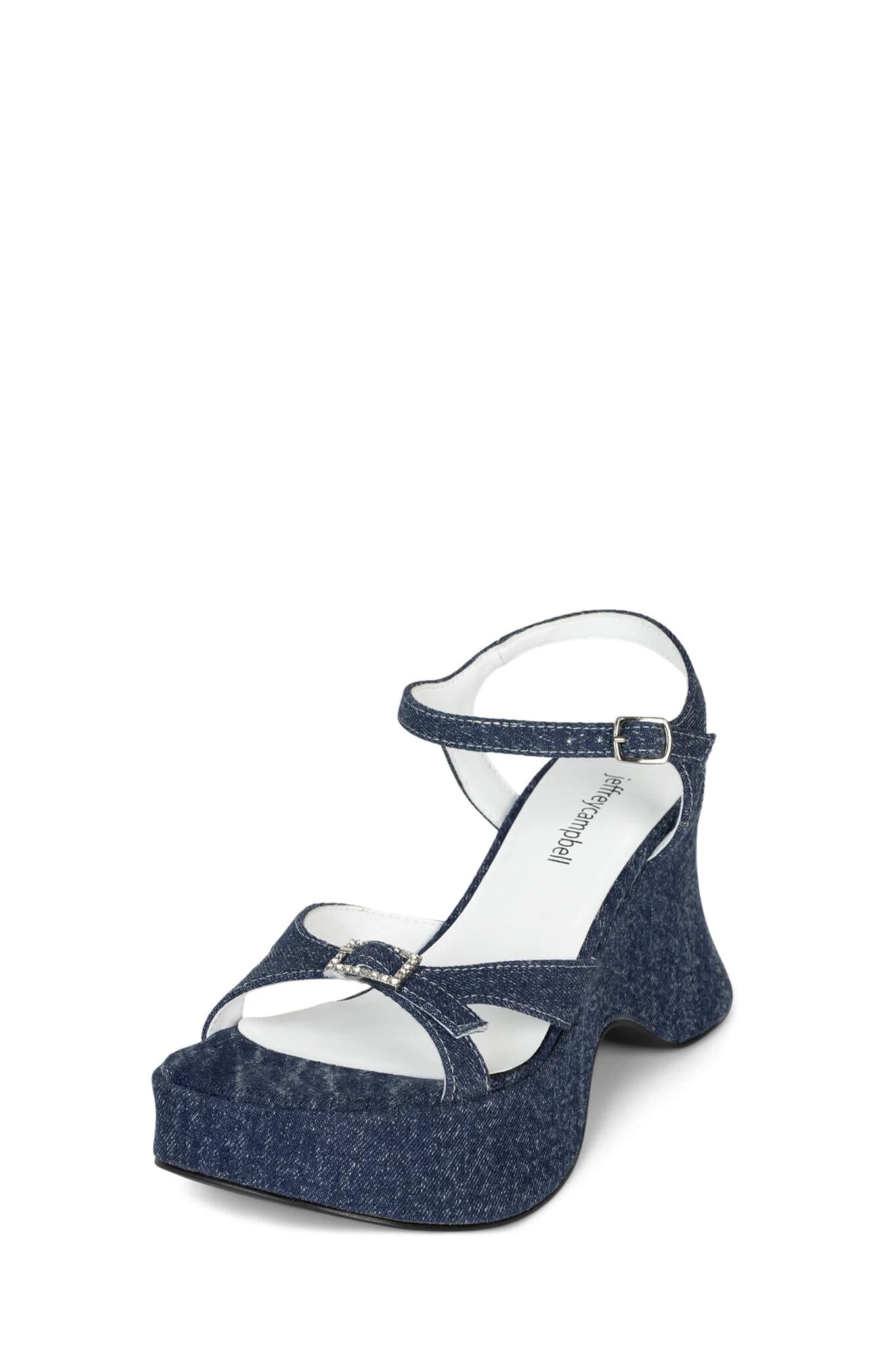 Denim platform wedge sandal with jewel buckle detail