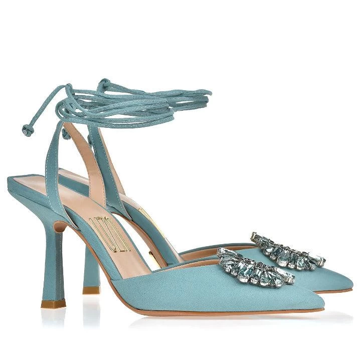 UZA PISTACHE SLINGBACK SILK HEELS